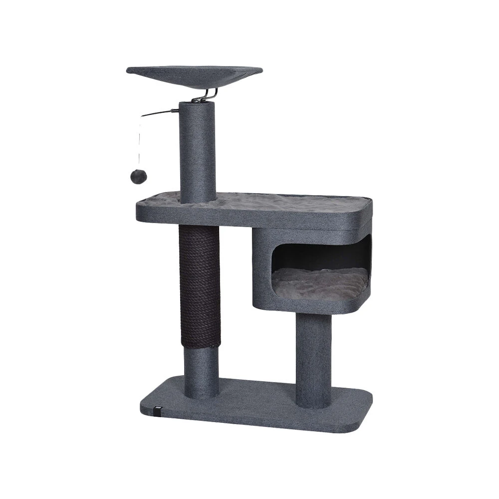 Ziet dit krabmeubel van Ebi er niet heerlijk zacht en comfortabel uit? Er zijn ontzettend veel fijne plekjes in dit krabmeubel waar uw kat zich kan terugtrekken of juist uren kan vermaken. De hangmat bovenin zorgt voor de ideale uitkijkpost en ook de grot is een heerlijk plekje voor een fijn middagdutje. Het losse kussen in deze grot is van namaak konijnenvacht. De krabpaal is bekleed met stevig sisal van 10 mm dikte, waardoor deze extra lang mee zal gaan. Na al dat krabplezier is het tijd om te spelen met het hangende pluche speeltje bovenin. Het balletje blijft maar terugkomen, dus uw kat hoeft zich voorlopig niet meer te vervelen! Kortom, genoeg avonturen te beleven in dit prachtige krabmeubel van Ebi.