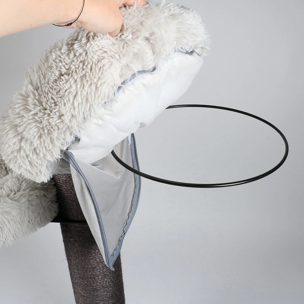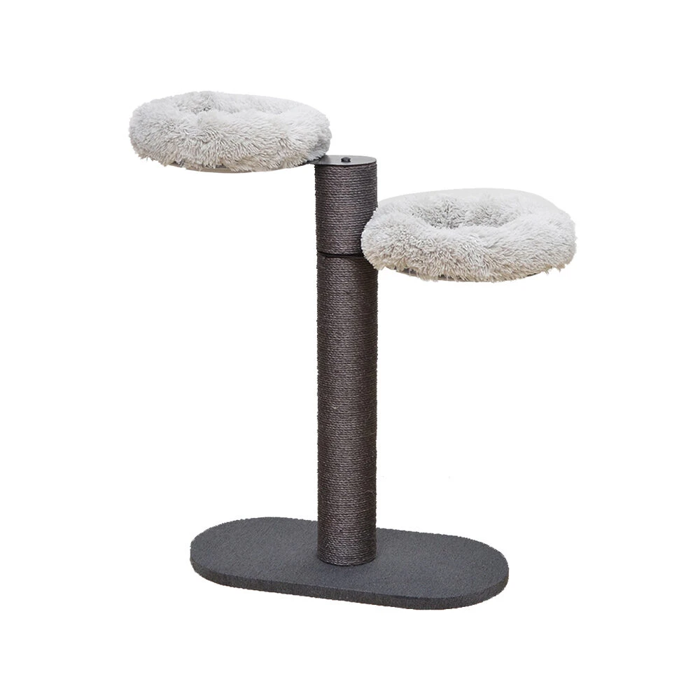 De krabpaal Skye antraciet/wit van Ebi is een mooie krabpaal, waar uw kat zich kan uitleven met zijn nageltjes, maar ook een lekker warm slaapplekje heeft in de donutmandjes. Doordat de mandjes wat hoger geplaatst zijn, voelt uw kat zich al snel veilig en kan de kamer ook goed in de gaten gehouden worden. De paal heeft een diameter van 15 cm en is bekleed met sisal. Voor de mandjes is er een metalen houder van 40 cm. De mandjes zijn afneembaar en worden bevestigd aan de houder via een ritssluiting.