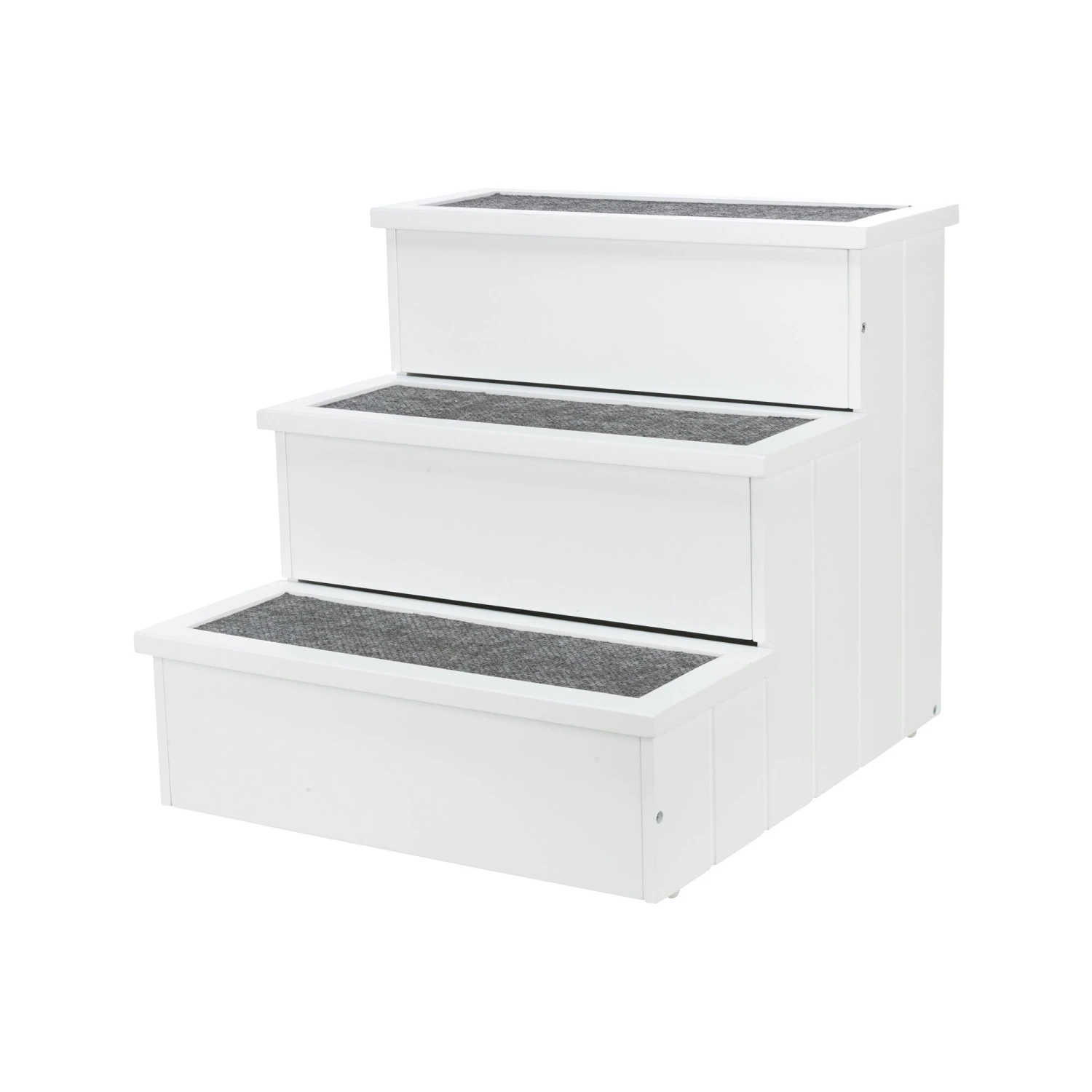 Als u uw huisdier een handje wilt helpen met op het bed of de bank te klimmen kunt u deze huisdiertrap van Trixie gebruiken. De trap is ook heel ondersteunend voor dieren met gewrichtsproblemen omdat ze niet meer hoeven te springen. De trap is bekleed met tapijt voor betere grip. De trap heeft afneembare treden, zodat je het ook als opbergruimte kunt gebruiken.